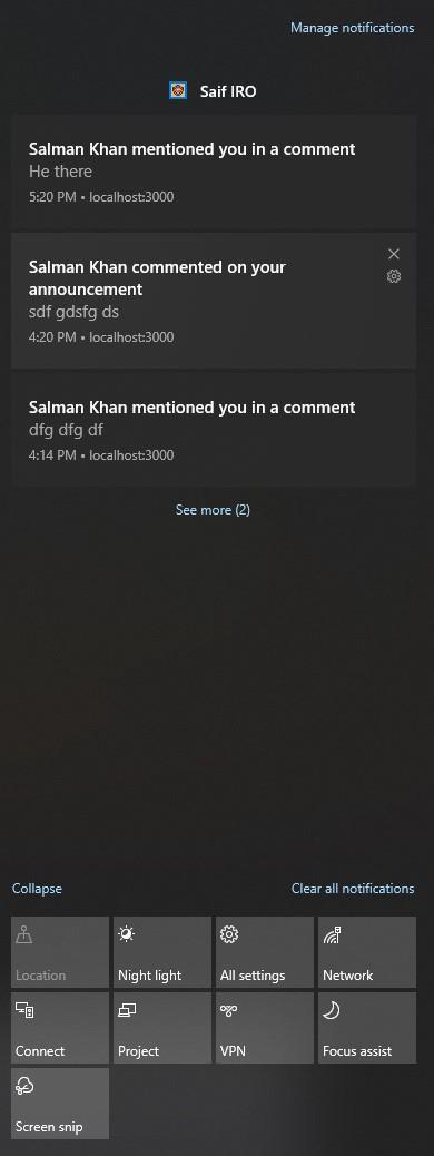 Express jsfor backend api. (Previously.NET, Later migrated to nodejs).Postgresfor database andPrimsaas ORM. Repositories are extracted to interfaces for scalability.Nuxt jsfor frontend. (PreviouslyBlazor and Razor page, Later migrated )PWAsetup for mobile and desktop experience.pg-bossfor queue managements and task scheduling (emails and notifications). Uses postgress to store the jobs.server sent eventsfor real time notifications.Server workerforNative Notificationson android, IOS and Desktop.Nginxfor deployment ofVps Server